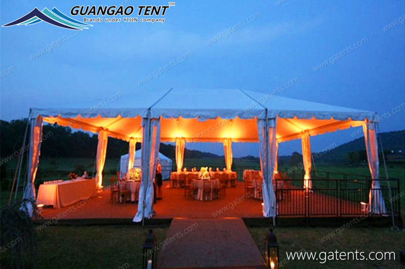 The wedding tents of Guangao tent manufacturers can be easily disassembled, can be quickly installed in a very short period of time, have a service life of more than 20 years, complete indoor facilities, stable and durable tent structure, and no restrictions on the venue.